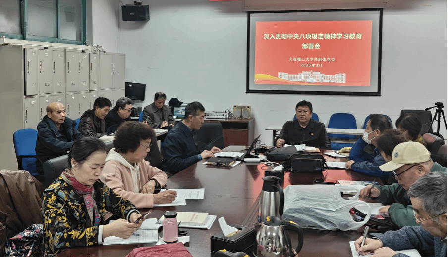 3月25日,大连理工大学离退休党委组织召开专题会议,部署启动深入贯彻中央八项规定精神学习教育。离退休党委委员、党支部书记及离退休处工作人员参加会议,会议由离退休党委副书记杨峰主持。