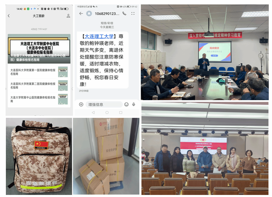 一是,增添便利化服务设施。在走廊处设立醒目的引导牌,方便老同志高效办理事务。办公室还为老同志设置“共享百宝箱”,内有老花镜、湿巾、消毒洗手液、口罩等等。针对老同志涉及的高频咨询事项和服务场景,制作通俗易懂的办事指南、资料清单等,焕新宣传栏,更加方便老同志识别阅读。二是,优化体检报名服务。在发布离退休教职工年度体检通知基础上,针对老年人手机报名体检操作难的问题,录制了四家医院的线上体检报名教学视频,让老同志能够顺利、高效地完成体检报名。同时,考虑到部分高龄老同志习惯传统报名方式,协调几家体检医院开通了电话预约专线。三是,开展“四季关爱”短信问候行动。加强和老同志的联系,每个季度,通过智能短信平台向全体离退休人员发送温馨提示。4月倒春寒期间,老同志们的手机纷纷收到了“注意防寒保暖,适时增减衣物适度锻炼,保持心情舒畅……”的暖心话语,让“云端的牵挂”真正落地为“身边的温暖”。四是,举办“银龄普法大讲堂”。在职党员邵晨发挥法律专业出身的优势,从老同志需求出发,开展系列普法知识讲座。4月9日,第一期“民间借贷相关法律实务交流”专题普法讲座面向退休自管会成员开展。着力提高老同志防骗意识和自我保护能力,帮助他们护好“养老钱”,让学校里的人情温暖得到法律护航。五是,为赴云南支教支研的银龄教师配送地震应急包。 缅甸7.9级地震发生后,云南部分地区震感强烈。离退休党委第一时间联系支教银龄教师确认安全状态,连夜采购16套专业应急救援包,内含应急照明、医疗用品、保温毯等20项物资,赶在清明假期前将物资送达滇西支教教师驻地,用实际行动践行“银龄教师在哪里,服务保障就跟进到哪里”的承诺。六是,在职党员学急救知识。为了提升突发意外情况下的急救意识和能力,离退休工作处在职党支部以主题党日的方式参加了校医院组织的 AED急救培训活动。同志们认真学习了急救常识以及心肺复苏、AED的操作技能,提升急救能力,确保在日常工作中能更好服务离退休老同志。