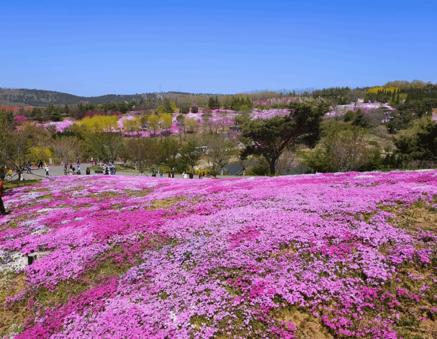 到达英歌石园区,首先映入眼帘的是绵延起伏的巨大山谷,满眼的绿色让人顿觉心清气爽。随着山路而上,只见花朵争奇斗艳,郁金香、芝樱花、桃花、梅花、海棠、牡丹、玉兰、迎春花、毛茛、彩槿、虞美人、梨花、大葱花、水仙等万花盛开,仿佛春天的花都聚集在这里。