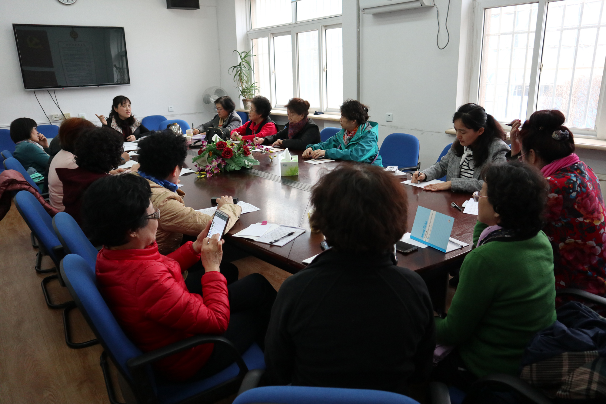 会上,张程江老师首先总结了2017年秋季学期老年大学学员人数、开设课程、学费收支等情况,通报了本学期学员报名以及课程的一些变化。接下来她进一步明确了班长职责,请各位班长发扬奉献精神,积极配合授课教师,做好班级的日常管理工作。