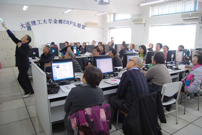 我校老年大学电脑班也越来越得到老同志们的喜爱,本学期电脑班课程开设二期,报名人数也比往期大幅增多,一度达到无法保证学员人手一台电脑的程度,后经过做工作,劝退部分学员,才将学员人数控制在合理范围,保证一人一机学习。