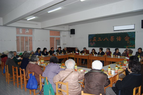 为迎接第99个国际劳动妇女节,3月5日上午,在老年大学教室内,我校的妇女离休干部们欢聚一堂,召开了庆祝“三八”国际劳动妇女节的茶话会。