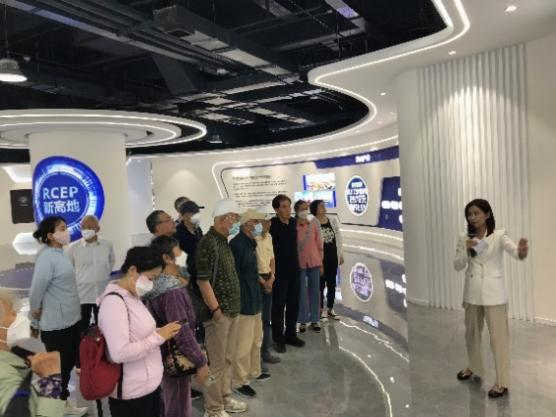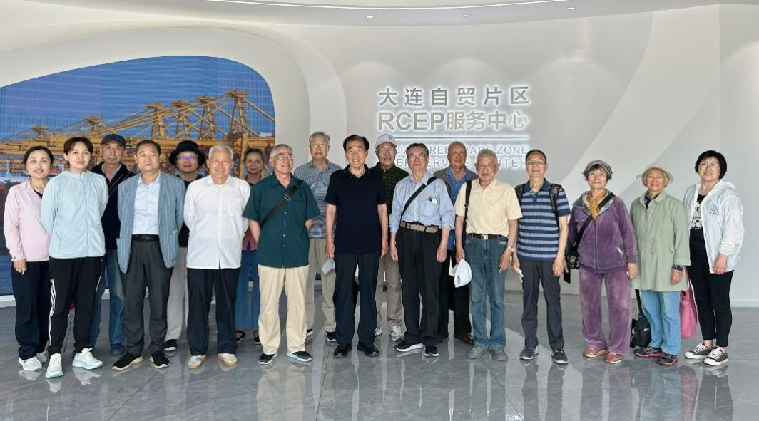 参观活动的最后一站,“五老”们来到位于大连保税区核心地段、起步区占地面积3.2万平方米的RCEP(大连)商务区。在RCEP经贸促进中心一楼展厅,大家听取了工作人员介绍,2022年1月1日,《区域全面经济伙伴关系协定》(RCEP)正式生效实施。为抢抓机遇,当年6月,RCEP(大连)国际商务区揭牌启动,11月16日在大连自贸片区正式启用,成为RCEP国家进入中国的新窗口,东北地区企业迈向RCEP的前沿阵地,为东北亚对外开放合作注入强大动力。