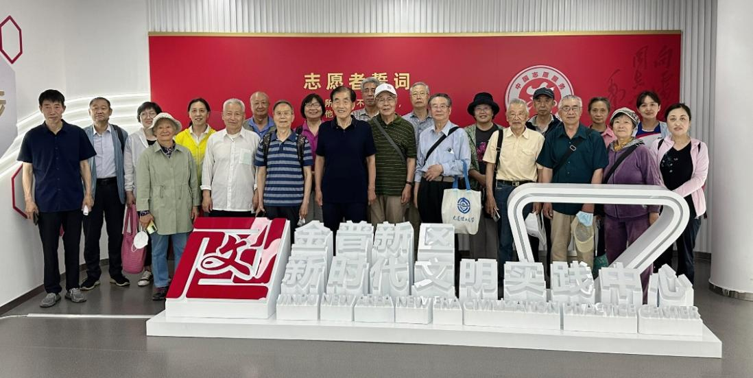 大工的老年志愿者们饶有兴趣地在“志愿者打卡地”合影留念。