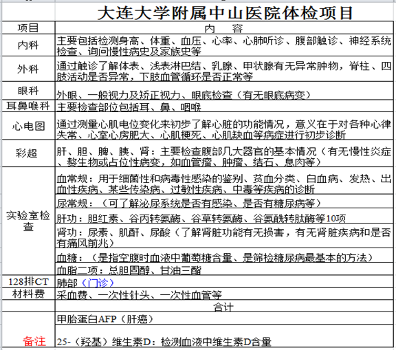 附件二:大连大学附属中山医院体检项目