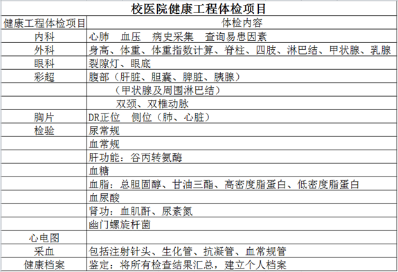 1、学校医院(体检方案内容详见附件1)