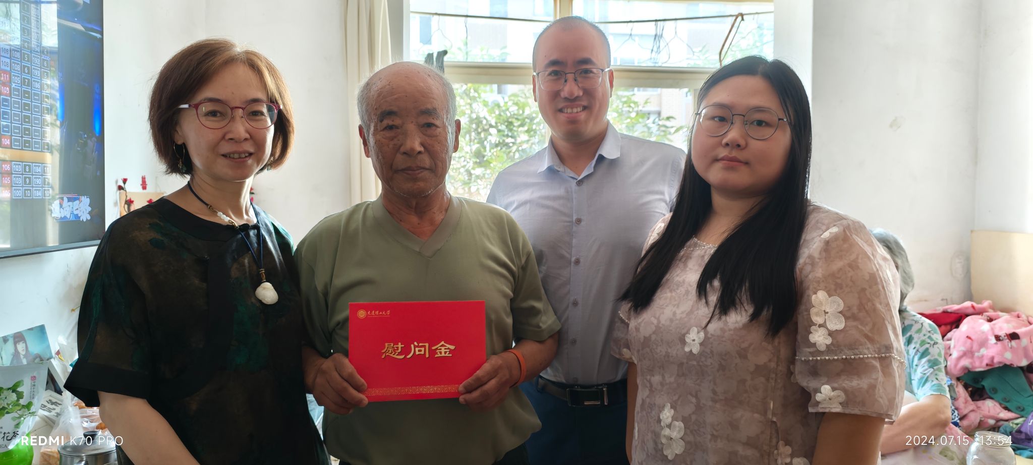 在中国共产党成立103周年之际,离退休党委开展“七一”走访慰问活动。离退休党委书记刘宇彤、副书记孙雪,离退休工作处副处长杨峰分别带队,看望所有在连的离休干部、入党60年、70年的老党员以及生活困难的老党员以及近期离任的党务工作者代表共计81人,送上慰问品和慰问金,感谢他们为学校建设发展作出的贡献,将党组织的温暖与关怀送到老同志心坎上。