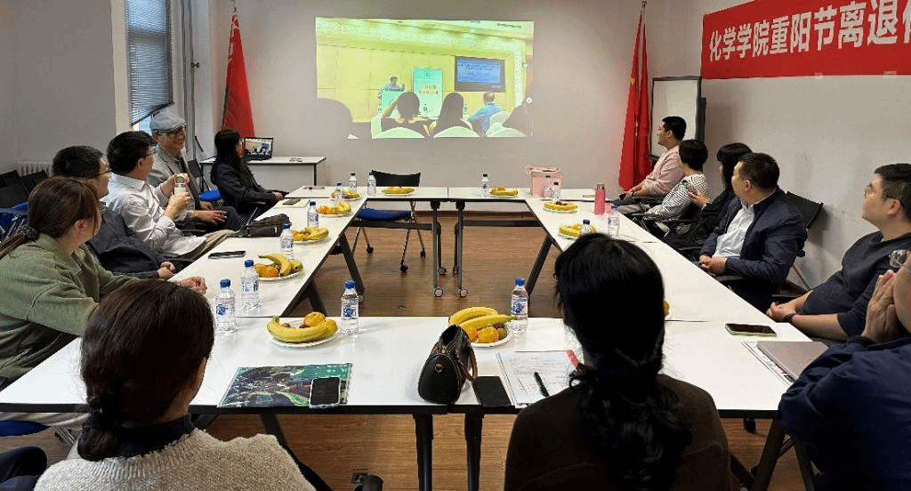 本次活动由化学学院党委副书记黎晓明老师主持。2023年荣休的袁景利老师与刘影老师作为退休教师代表出席会议。学院党委书记崔旦老师、学院常务副院长陶胜洋老师、分析化学教研室主任宋波协同青年教师代表、实验教学中心宿艳协青年教师代表以及学院党办、行政办、学办的全体老师出席此次活动。